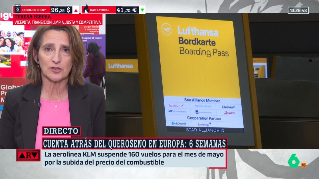 Teresa Ribera, sobre la falta de combustible para aviones: "No es una situación de absoluta emergencia, pero es preocupante"