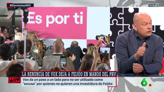 El periodista aclara si cree que estamos más cerca de una repetición electoral después de que el PP haya recibido el apoyo de Vox para facilitar una "mayoría constitucional" y conseguir que Feijóo sea investido presidente.