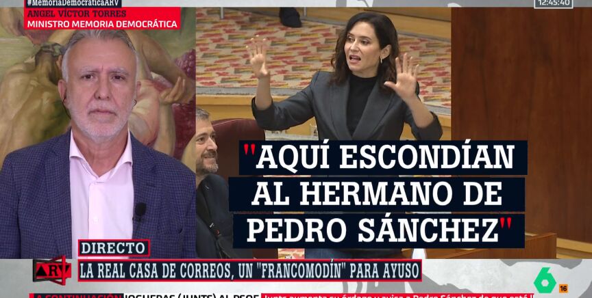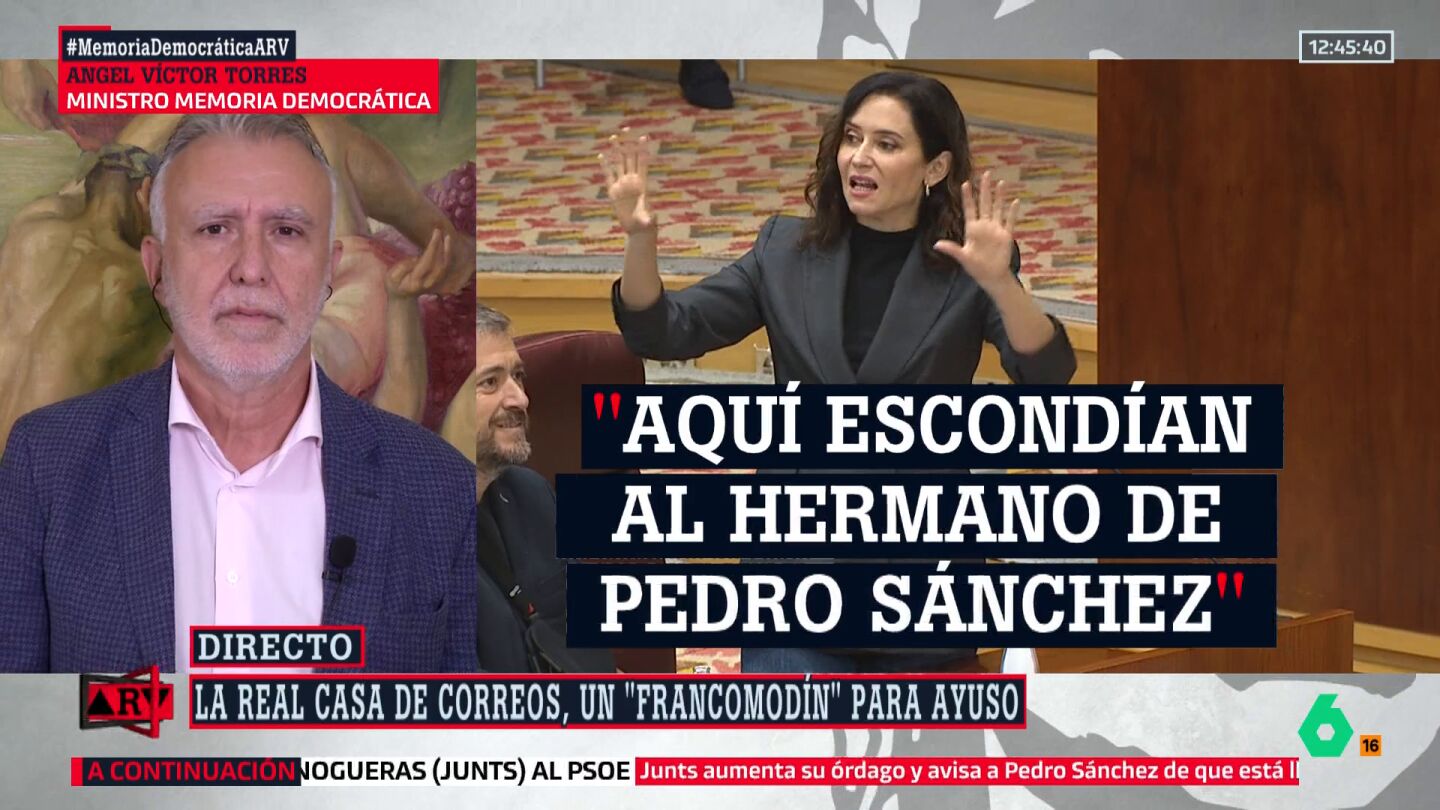 La declaración de la Real Casa de Correos como Lugar de Memoria Democrática ha generado controversia entre la presidenta madrileña, Isabel Díaz Ayuso, y el Gobierno. Ayuso critica la decisión y arremete contra el Ejecutivo con comentarios irónicos, mientras que el ministro de Memoria Democrática, Ángel Víctor Torres, defiende la medida. Torres subraya que el edificio fue un centro de torturas durante la dictadura y que la placa busca recordar esos hechos para evitar que se repitan. Argumenta que Ayuso, al oponerse, ignora la historia democrática y busca un conflicto innecesario. El ministro destaca la importancia de recordar el pasado para proteger las libertades actuales, lamentando que Ayuso no apoye esta iniciativa.
