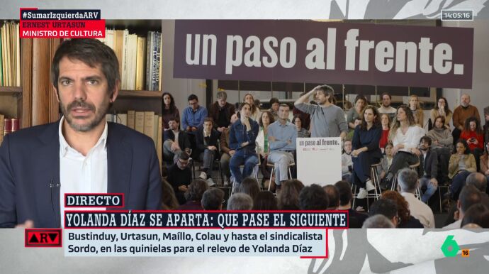 Este viernes, el ministro de Cultura, Ernest Urtasun, miembro de Sumar, entraba en directo en Al Rojo Vivo y contestaba de forma rotunda a la pregunta de Antonio García Ferreras: "¿Quién cree usted que es la persona más adecuada para sustituir Yolanda Díaz al frente de Sumar de cara a unas elecciones generales?".