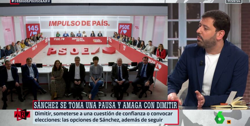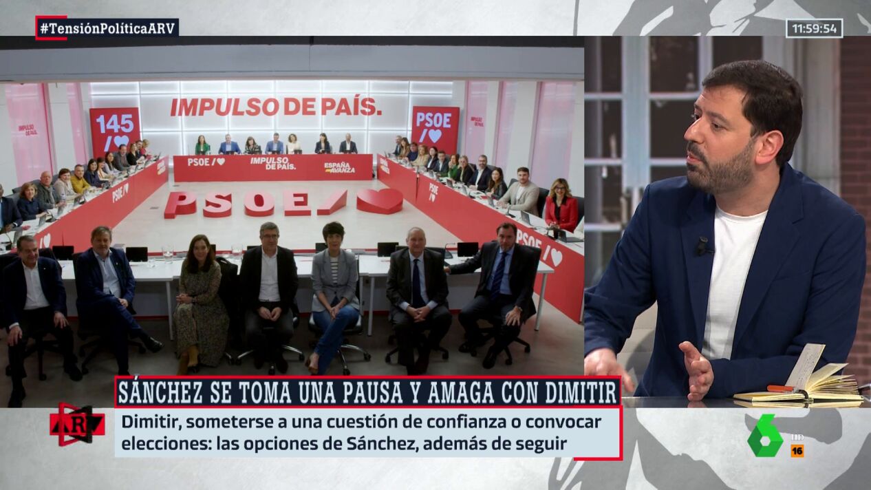 El periodista de InfoLibre Antonio Ruiz Valdivia señala que en apenas 15 días podemos vivir un "tablero político" totalmente diferente, después del anuncio de Pedro Sánchez de dejar su agenda política durante 5 días para reflexionar sobre si seguir o no en el Ejecutivo. Y todos los escenarios están abiertos dentro del PSOE.