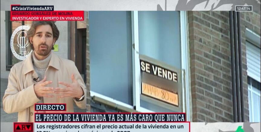 Antonio García Ferreras conecta en directo desde el plató de Al Rojo Vivo con el experto en ViviendaEduardo González de Molina para analizar sobre que el precio del metro cuadrado esté "más caro que nunca". Y es que el precio de la vivienda supera ya los 2.160 euros por metro cuadrado y bate los máximos de 2007. "Son datos preocupantes que muestran de nuevo ese gran desbalance que tenemos entre oferta y demanda", afirma el experto en Vivienda, que recuerda que "ha habido un incremento poblacional en los últimos años y la parada de la construcción tras la crisis inmobiliario y de la crisis del COVID no ha ayudado".