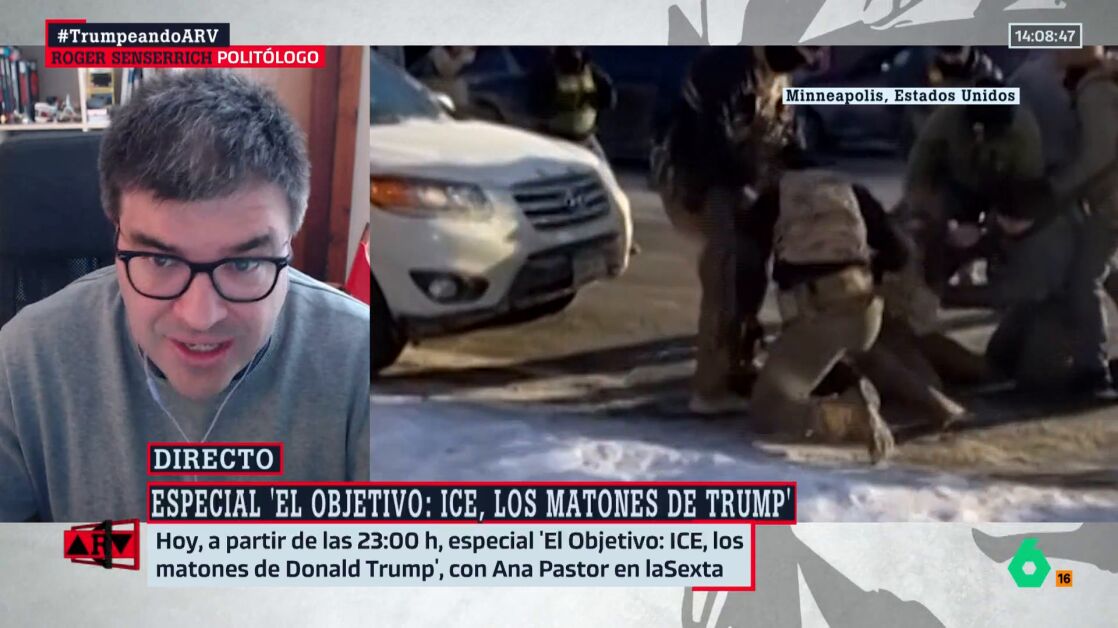 Es decir, "¿tú crees que la administración de Trump va a seguir adelante con estas políticas radicales tan brutales contra los inmigrantes?", le pregunta Ferreras. "Van a intentarlo. Desde luego", asegura el politólogo: "Seguramente cambiarán un poco las tácticas para intentar reducir esta clase de imágenes que se está viendo, ya que una de las grandes éxitos de las protestas en Minneapolis ha sido que los observadores, que la sociedad civil se ha organizado para filmar todo lo que sucede", aclara.
