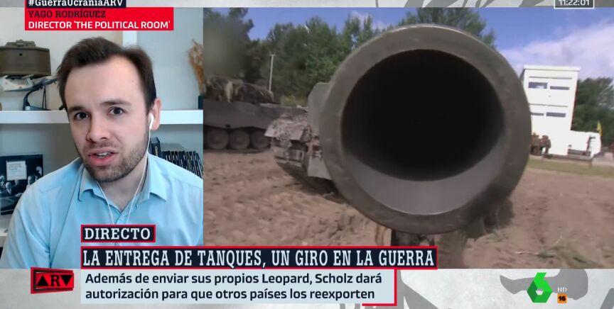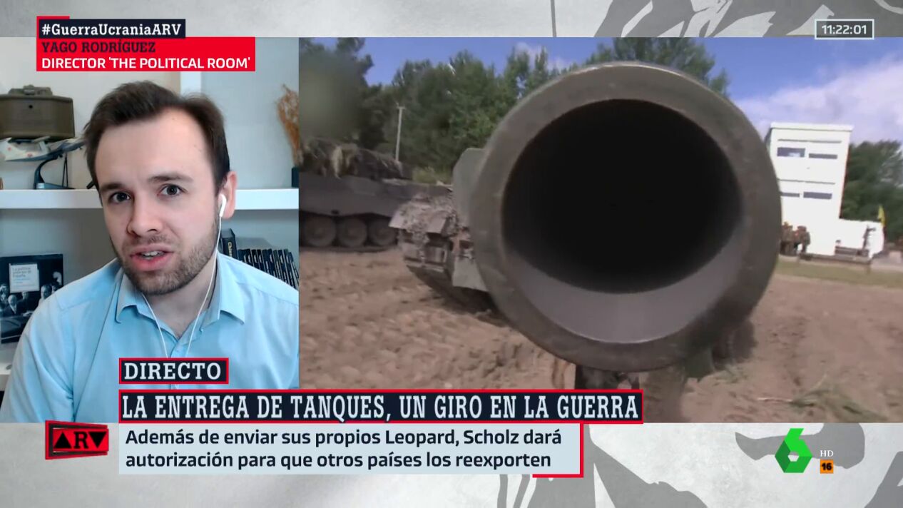Yago Rodríguez, director de "The Political Room", apunta que una vez los socios occidentales decidan enviar tanques Leopard a Ucrania para hacer frente a la invasión rusa puede producirse un giro en el conflicto, pero que esto podría tardar en dar sus frutos: "La guerra se va a alargar bastante".