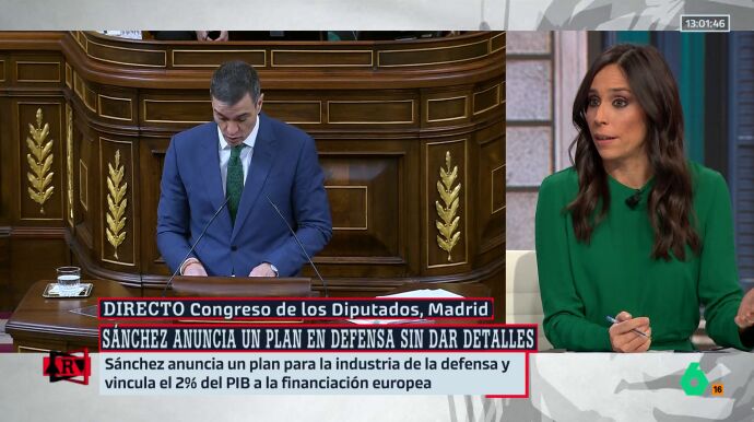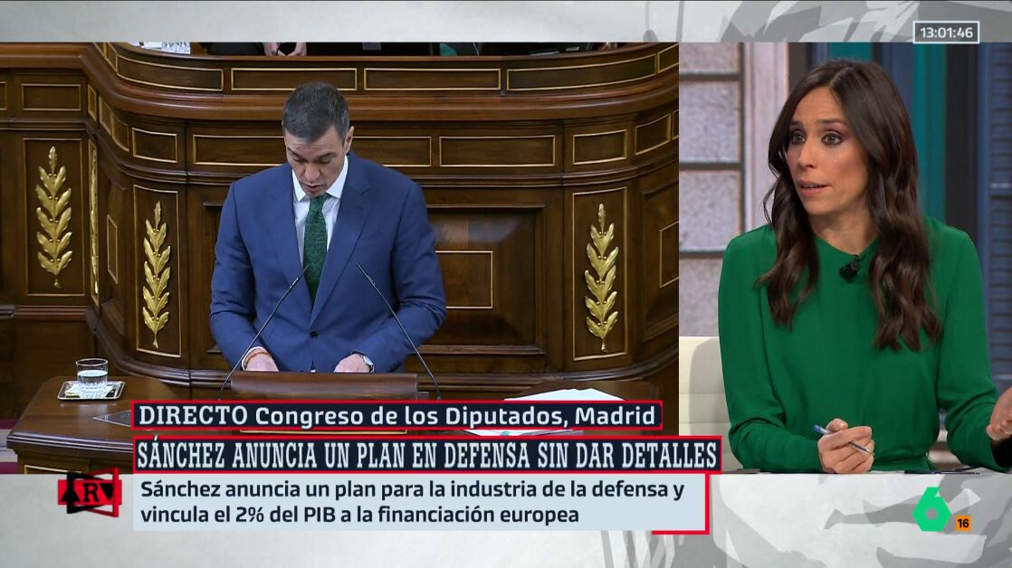 En Al Rojo Vivo, la periodista analiza la comparecencia de Sánchez en el Congreso, donde reafirmó el aumento del gasto en defensa, pero critica la falta de detalles sobre cómo se distribuirá dicho incremento.