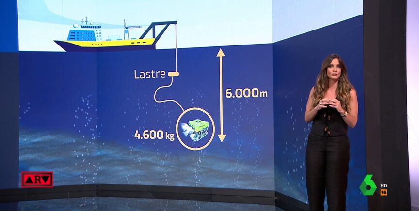 El robot está conectado a su buque madre, en este caso el Atalante, mediante un cable electromecánico de 8.000 metros. Pesa unos 4.600 kilos, mide unos tres metros de largo y se opera de forma remota.