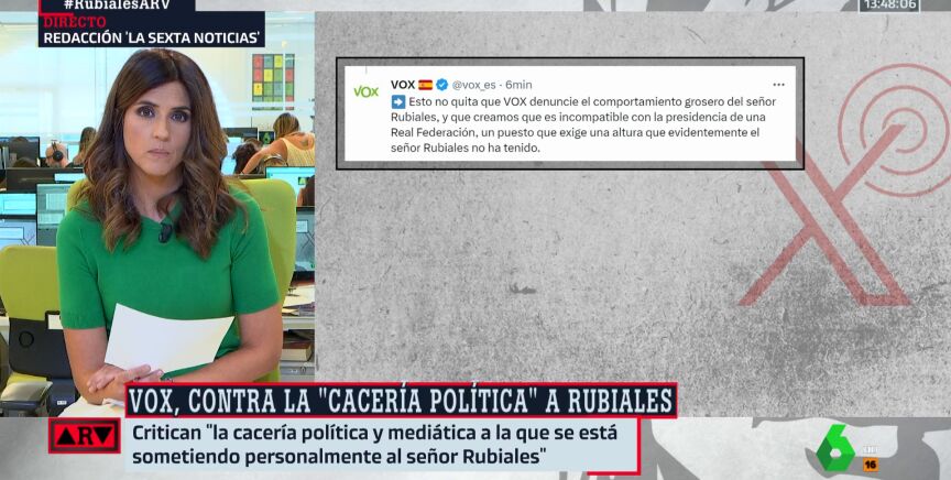 De paso, el partido de Santiago Abascal aprovecha para cargar contra el Gobierno en funciones, al que acusa de generar "toda esta polémica", y contra ley del 'solo sí es sí', asegurando que el "relato de la izquierda" sobre el 'caso Rubiales' pretende ocultar el "fracaso" de esta norma, por la que reclaman la "dimisión en bloque" del Ejecutivo.