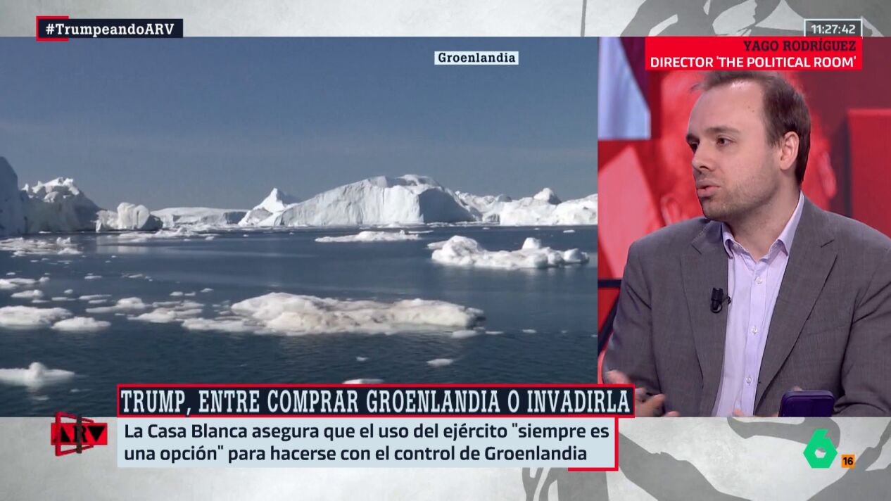 Yago Rodríguez, director de 'The Political Room', señala que Trump "quiere hacer una compra de territorios como se hacía habitualmente en el siglo XIX, lo que supone cargar contra el derecho moderno, en el que la soberanía nacional y el territorio son sagrados".