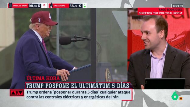 El director de 'The Political Room', Yago Rodríguez, pone en duda el ultimátum anunciado por el presidente de Estados Unidos, Donald Trump, quien ha asegurado que ordenó "posponer durante cinco días" cualquier ataque contra infraestructuras energéticas de Irán.