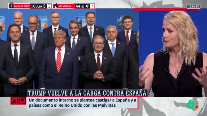 Sobre esta situación se pronunció Zaida Cantera en Al Rojo Vivo, donde fue preguntada del uno al diez por su nivel de preocupación ante la posibilidad de que la política de Trump debilite y fracture la OTAN."Nueve porque ya la ha fragmentado", responde.