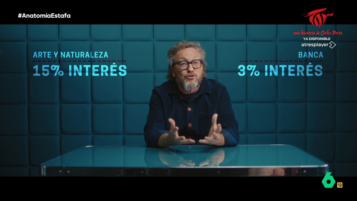 "¿Qué es Arte y Naturaleza?", pregunta Mamen Mendizábal a Dani Cervera, jefe de economía de laSexta Noticias. "Es una estafa piramidal, donde las obras de arte eran la tapadera". "Los inversores adquirían una pieza artística y se les decía que con el tiempo se iban a revalorizar tanto que se podían permitir pagar por adelantado esa revaloración en forma de intereses", explica.