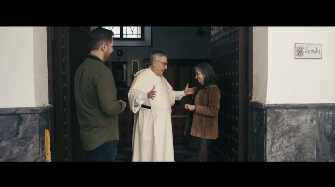 "No sé si llamarle 'el último mohicano'", bromea la periodista. "Efectivamente", asume él, para después contar que los turistas se sorprenden al verlo con los hábitos. "Nos preguntan. Se quedan más encantandos todavía, porque es todo como más real", desvela el director.