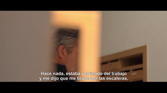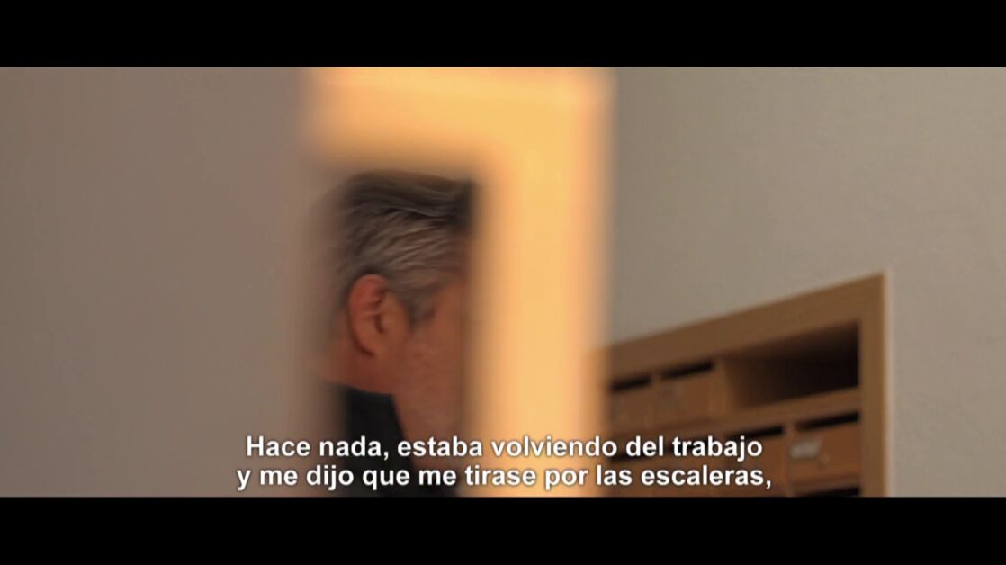 Los policías acuden al lugar donde se encuentra la víctima de violencia de género. Allí les cuenta lo sucedido: "Ha dicho que iba a venir a mi casa, que nadie le iba a frenar, ¡tengo la cabeza llena de cortes! Me ha agredido repetidas veces, como en un mes y medio (...)Tengo un agujero que me hizo de puñetazos y no sé ni cómo, tengo una marca, y estoy embarazada. Hace nada estaba volviendo del trabajo y me dijo que me tirase por las escaleras, que hiciera lo posible para abortar porque él no se iba a hacer cargo".