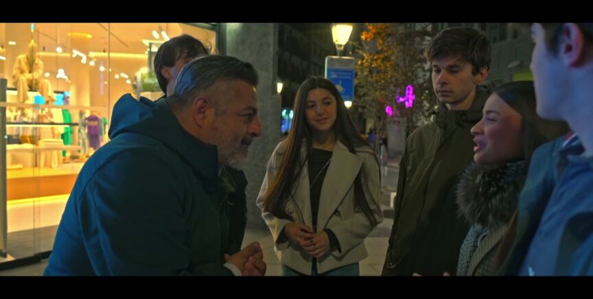 Los jóvenes explican que son voluntarios de una parroquia. Uno de los jóvenes destaca que una de las cosas que más le sorprenden es que haya "tanta variedad de situaciones en un sitio tan pequeño" mientras que una chica confiesa que antes "tenía idealizada la Gran Vía". Sin embargo, explica que desde que vive en Madrid, intenta "pisarla lo menos posible porque es agobiante, sobre todo un viernes o sábado".