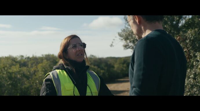 Mientras tanto Rabaneda prosigue su conversación con una de las ojeadoras y la acompaña mientras ella ondea un banderín para imitar el "sonido del aleteo de la perdiz" para engañarla. Los ojeadores cobran 58 euros brutos por cada jornada de trabajo.