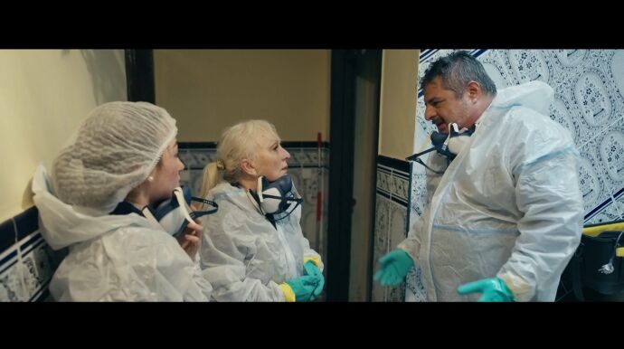 Tanto es así que es difícil encontrar a personas dispuestas a dedicarse a esta ingrata labor. Quizá por ello su empresa es familiar y en ella están empleadas su madre y su hija, que continúan limpiando el piso sin descanso, sacando constantemente sacos de basura. Dentro de la vivienda, un nido de cucarachas sorprende a Jalis, que no puede evitar un grito de espanto.