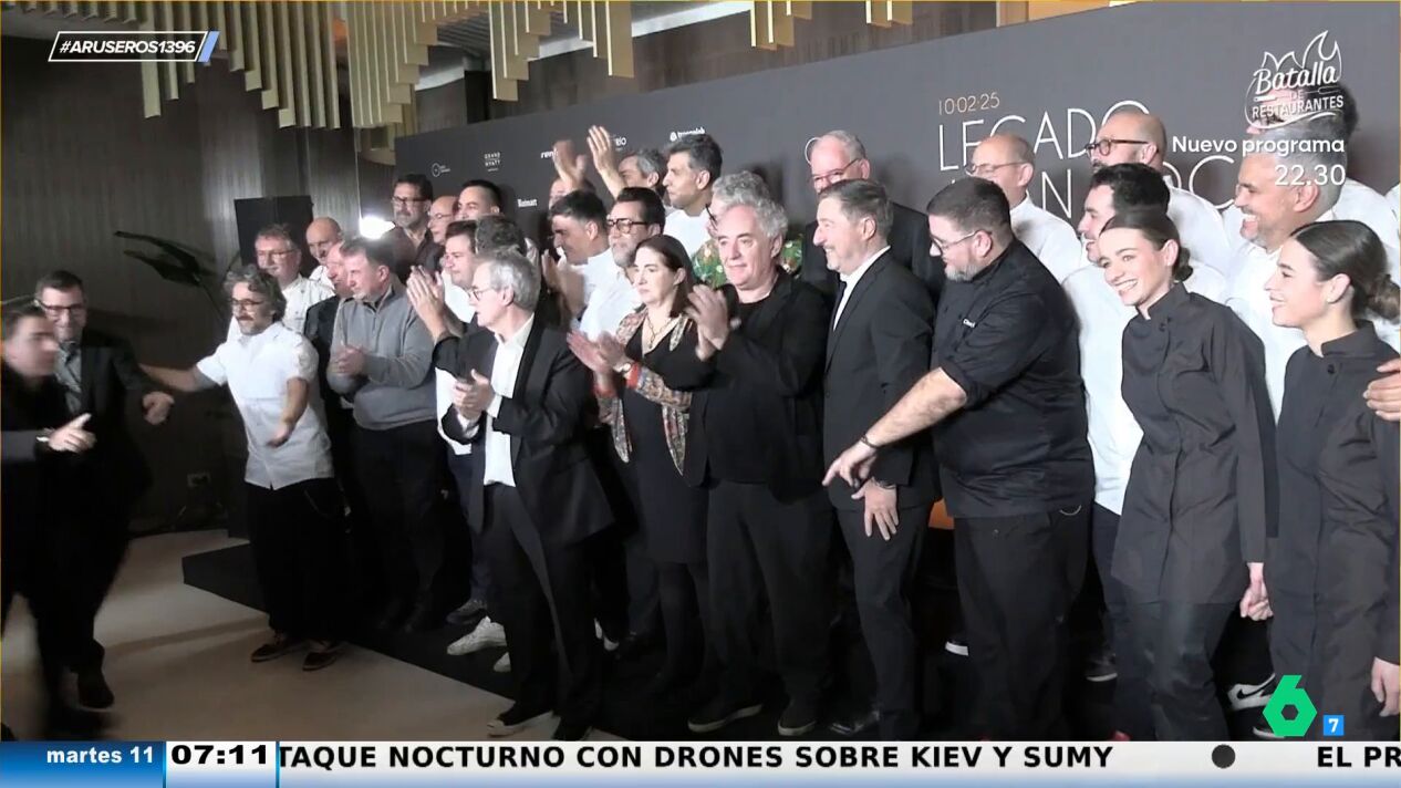 "Qué suerte tener un amigo y un profesional como él", destaca Martín Berasategui, que, junto a Alberto Chicote y otras estrellas Michelin se han reunido para homenajear a Joan Roca, "un cielo de hombre".