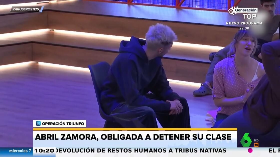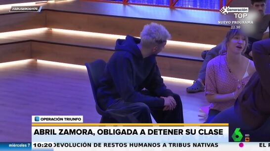 Abril Zamora ha criticado duramente a las personas que se congregan cerca de la academia de Operación Triunfo para gritar: "Personas que estáis fuera, os amamos, pero callad". "Es muy difícil poder trabajar si la gente está gritando nombres a lo loco", afirma la profesora cuando escucha gritos en mitad de una clase con los concursantes.