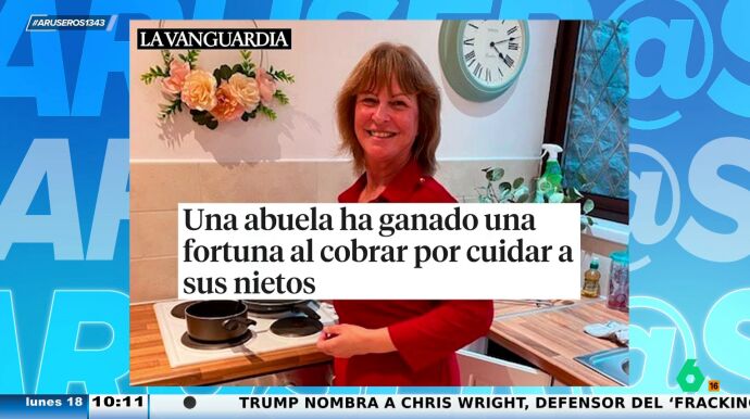 ¿Cobrar a los hijos por el cuidado de los nietos? Es lo que está haciendo la protagonista de este viral que, además, ya ha confesado haber ganado 32.000 dólares con su "nuevo negocio". La señora cobra 19 dólares por medio día y 38 dólares por el día completo. "Es decir, el día completo no tiene descuento respecto al medio día", bromea Alfonso Arús.