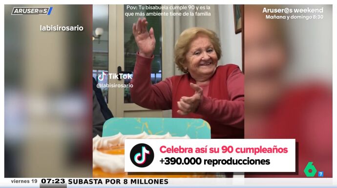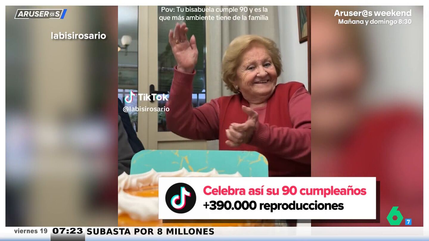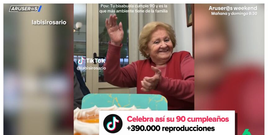 Los colaboradores de Aruser@s mandan un fuerte saludo a '@labisirosario', la abuela "con más arte de Sevilla", tras ver con qué alegría está celebrando su 90 cumpleaños rodeada de los suyos.