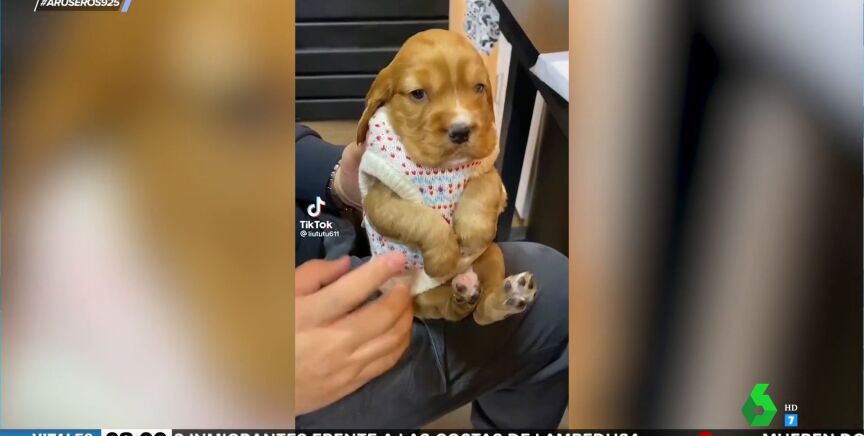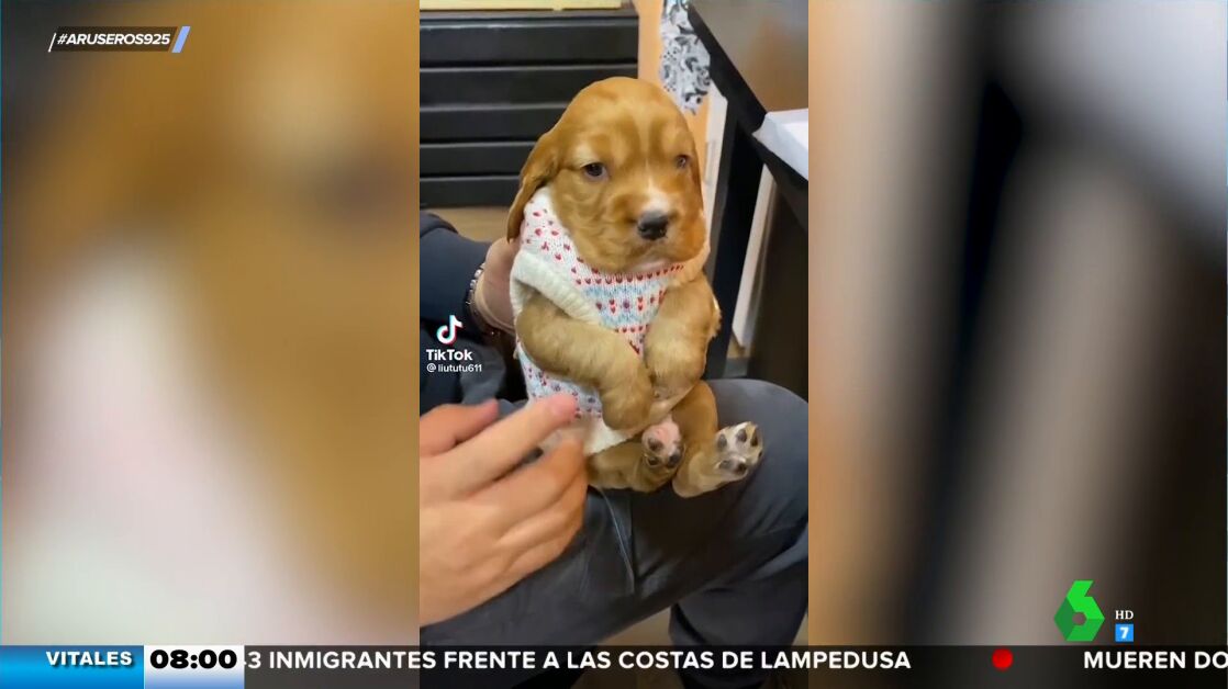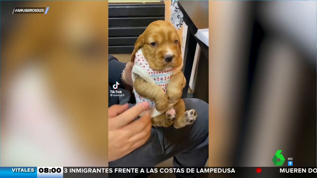 Os lo avisamos con antelación: este vídeo de Aruser@s es ternura en estado puro. El pequeño cachorrito protagonista de estas imágenes está viviendosus primeras navidades en compañía de su familia humana, que no ha dudado en comprarle un típico jersey navideño para que disfrute de estas fiestas.