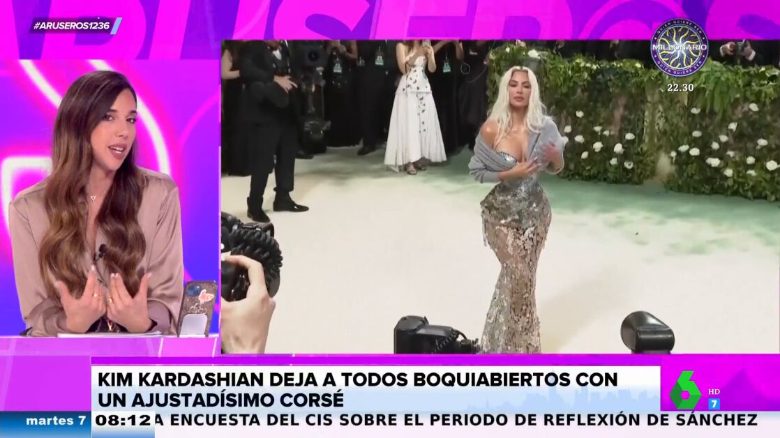 Por otro lado, Kim Kardashian fue una de las invitadas a las que más le costó desfilar con su vestido. "Si os fijáis, para mí,s e ha quitado cinco costillas porque es prácticamente imposible que una persona tenga una cintura semejante", destaca Tatiana Arús, que se la veía "con cara de no poder respirar": "También tuvo muchas dificultades para subir la escalera, que iba pasito a pasito".