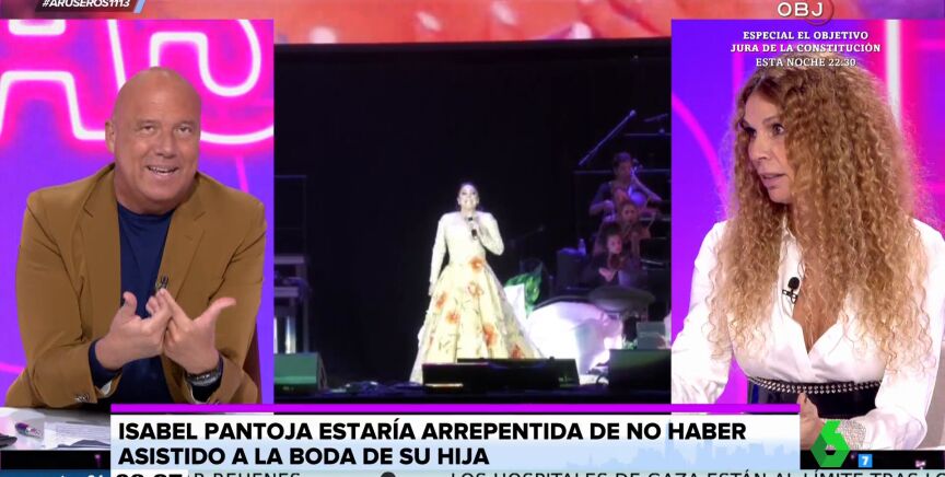 Según algunas informaciones, Isabel Pantoja estaría arrepentida de no haber asisitido a la boda de su hija Isa Pantojacon Asraf Beno. "A buenas horas, mangas verdes", destaca Alfonso Arús mientras que Angie Cárdenas le manda un mensaje desde el plató de Aruser@s: "Ahora es tarde, señora".