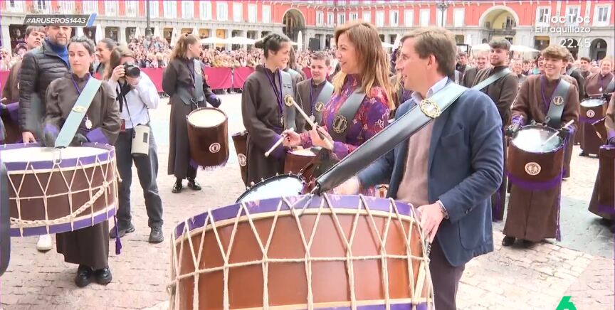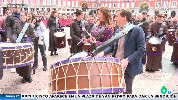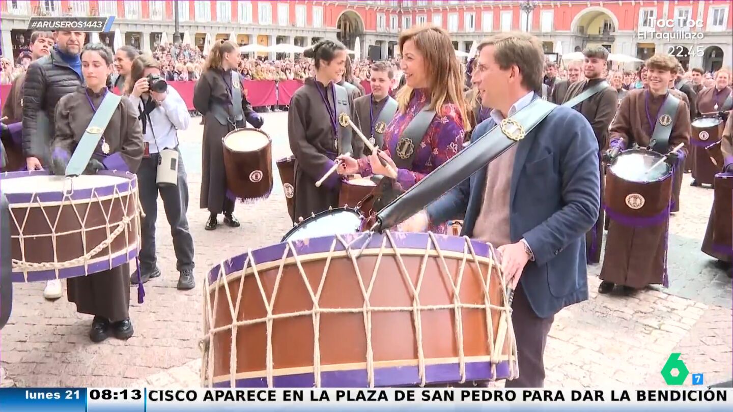 El alcalde de Madrid se ha unido a la tamborrada de la Plaza Mayor para terminar la Semana Santa a golpe de tambor. "Lo vemos muy cómodo, pero lo que más me ha gustado han sido las declaraciones previas donde él ya amenazaba de que iba a tocar, pero que igual no era lo suyo", destaca Tatiana Arús al mostrar el vídeo.