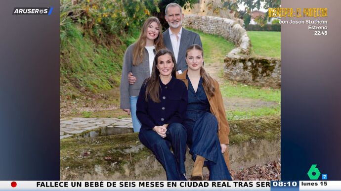 Por otro lado, Tatiana Arús enseña en el vídeo principal de esta noticia la felicitación navideña de los reyes, que conquista al plató. Y es que en la imagen aparecen únicamente los cuatro perros de la reina Sofía posando delante del árbol de Navidad. "Lo curioso es que este año todos tienen sus patas, no ha cortado patas a nadie", destaca Alfonso Arús, que felicita a la reina Sofía por sus avances con el photoshop, ya que el presentador asegura que "los perros están superpuestos" a la imagen.