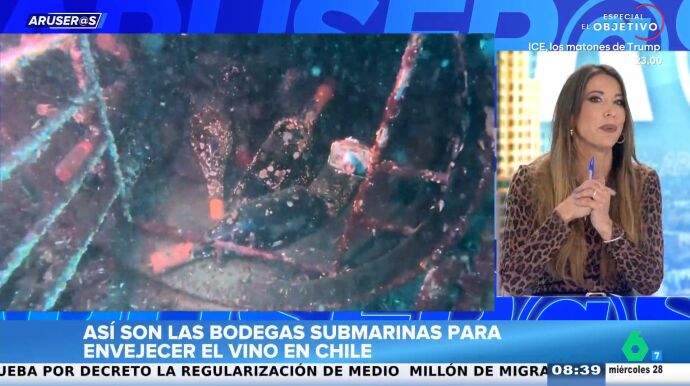 Se trata de una iniciativa que une a una asociación de bodegas con una empresa de buceo. El proceso consiste en sumergir, entre 10 y 20 metros bajo el mar, unas jaulas metálicas donde el vino envejece de forma progresiva. Según explica la tertuliana, cuando las botellas salen a la superficie "los taninos son más sedosos, suaves y el vino adquiere un cuerpo mucho más elegante".