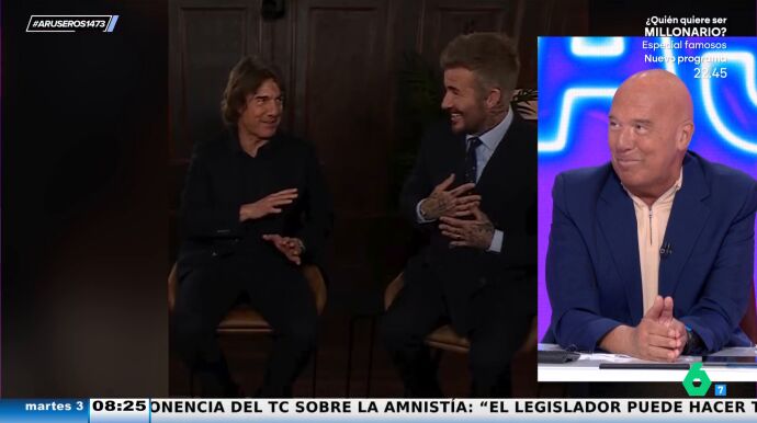 Una broma de Beckham que Tom Cruise terminó ejecutando. Tras escucharle, Alfonso Arús afirma que "todo lo que envuelve a Beckham es infantil": "Hace bromas de niño y con Tom más todavía".