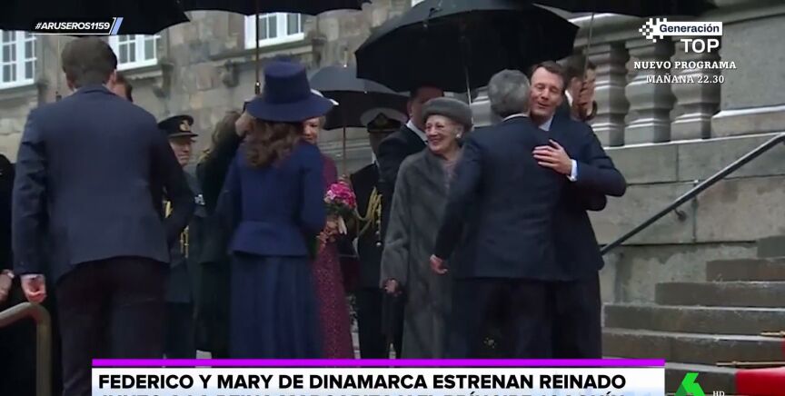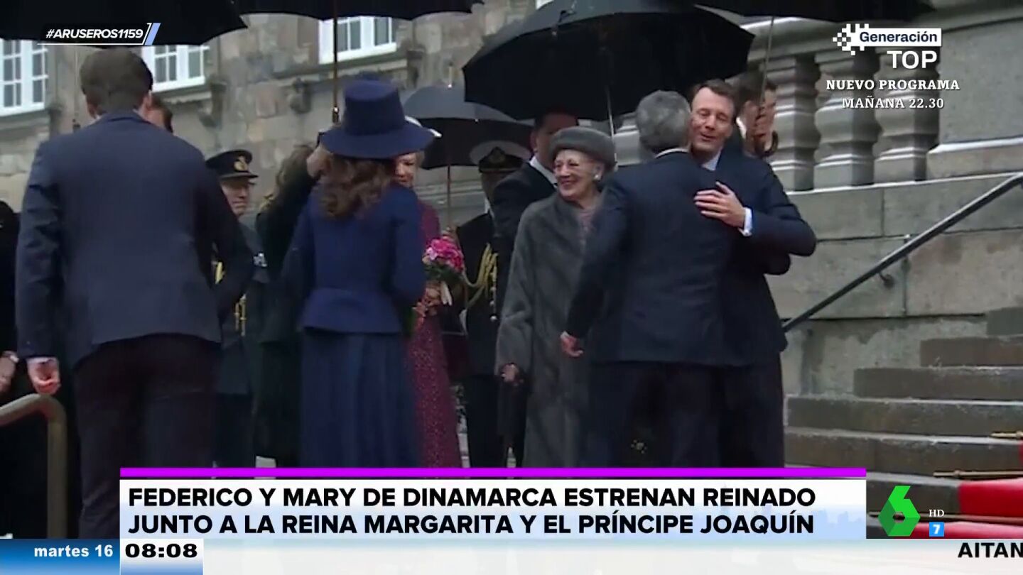 Alfonso Arús analiza el "cambio radical de Mary de Dinamarca con la reina Margarita" en el primer acto oficial tras la abdicación de su suegra y convertirse Mary y Federico en reyes. "Tenemos las primeras imágenes de la recepción en el Parlamento danés", explica Tatiana Arús, que enseña el cambio entre la reina Mary y la reina Margarita: "Hasta la fecha Mary tenía que hacerle la genuflexión, pero ahora ya no".