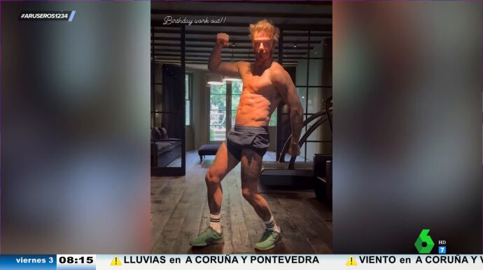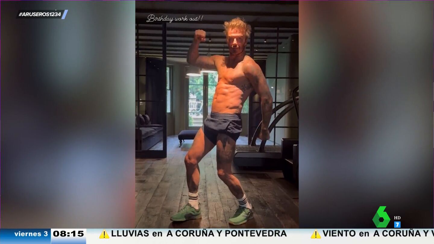 David Beckham ha celebrado su 49 cumpleaños rodeado de su familia. Incluso, Victoria Beckham ha compartido un vídeo de su marido mostrando que "luce muy bien", como destaca Tatiana Arús en el vídeo principal de esta noticia. El exfutbolista aparece sin camiseta en el gimnasio marcando músculo y "con la luz perfectamente escogida para que le marque".