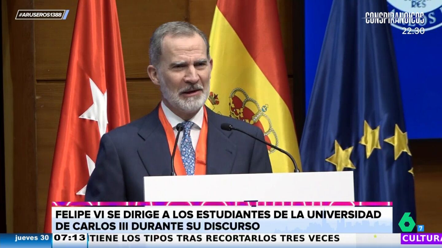 El rey Felipe VI ha cumplido 57 años recibiendo la Medalla de Honor de la Universidad Carlos III, donde ha realizado un discurso que no termina de convencer a Alfonso Arús.