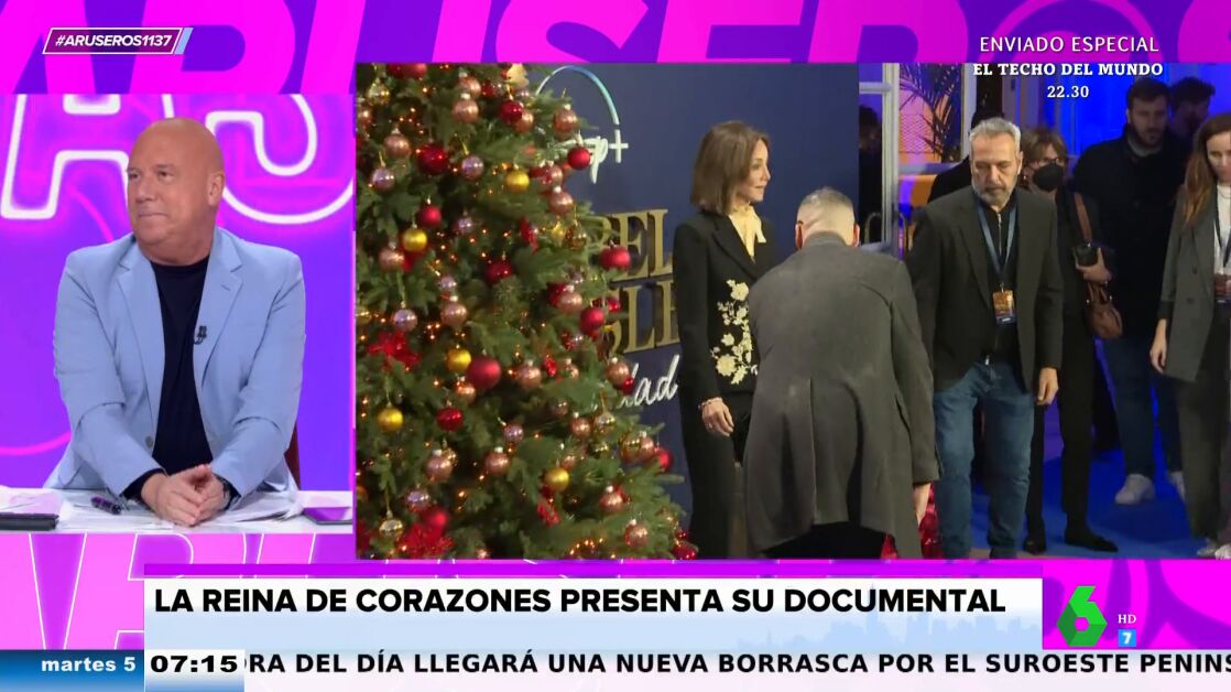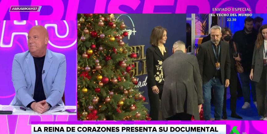 Isabel Preysler, también conocida en Aruser@s como "la reina emérita de corazones" (porque ahora ya no "corazonea"), estrena hoy documental en Disney+, pero antes de llegar a nuestras pantallas, se preestrenó anoche en Madrid. La protagonista de esta navideña miniserie estuvo "sonriente y relajada", aunque tuvo un momento de desequilibrio taconil que pone en un 'ay' a Angie Cárdenas. "¡Casi se nos cae!".