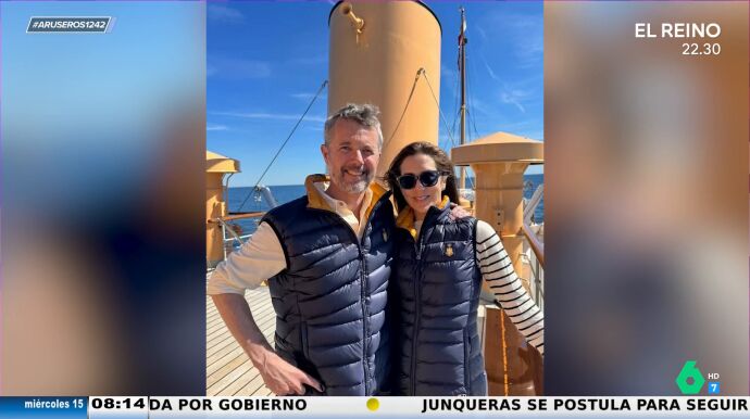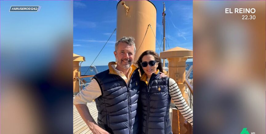 En la imagen, ambos aparecen sonrientes y con un look parecido en un barco. "Aquí se tocan", destaca Alfonso Arús al ver la fotografía, donde afirma que el rey "pasa la mano por detrás" a su mujer: "Le está tocando el culete aquí". Sin embargo, Alba Gutiérrez afirma que Mary de Dinamarca no pasa la mano por la cintura de su marido. "Ella no, pero aquí él pone la directa", destaca el presentador, que enseña en el vídeo principal de esta noticia el discurso del rey de Noruega.