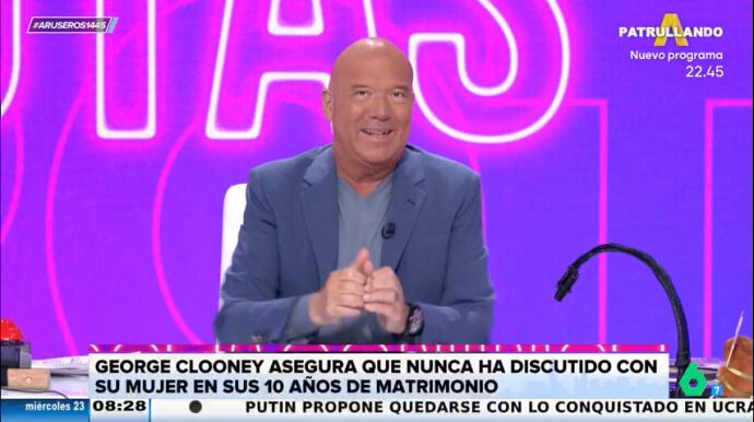 George Clooney asegura que no ha discutido nunca con su mujer en 10 años de matrimonio y Alfonso Arús no se fía de él ni un pelo teñido de esos nuevos que luce el actor.