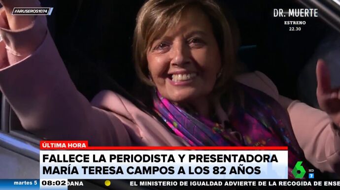 "Lamentablemente, antes de los titulares debemos confirmar el fallecimiento de María Teresa Campos. Se ha hecho ya oficial la muerte de María Teresa Campos a los 82 años después de ser ingresada en el hospital por insuficiencia respiratoria", ha anunciado Alfonso Arús en directo en Aruser@s. "Así lo ha comunicado la propia Sandra Golpe a través de las redes sociales", ha añadido Tatiana Arús.