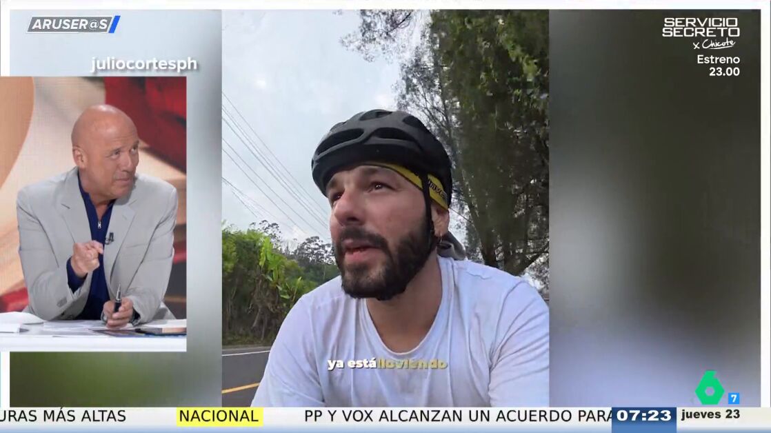El presentador de Aruser@s destaca el esfuerzo y la autenticidad de '@juliocortesph', el creador de contenido español que suma más de 500 días recorriendo el mundo sobre dos ruedas.