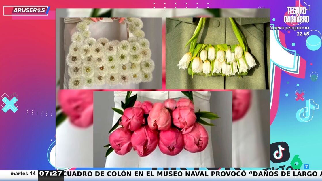 De "corona de muertos" a "brazo de gitano relleno de nata". A los colaboradores de Aruser@s parece no convencer la nueva tendencia que arrasa entre las novias en Tiktok: bolsos de flores para el día de tu boda.