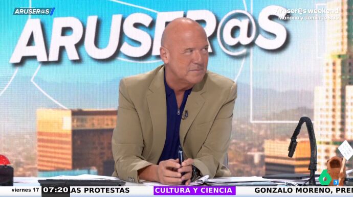 Desde el plató de Aruser@s, Alfonso Arús se pregunta: "¿Pero qué todo incluido has pillado?". "Le han timado o no ha leído bien la letra pequeña", ríe Hans Arús. El presentador del programa matiza que "le hace gracia" cuando el "todo incluido" se diferencia por marcas: "Te puedes tomar un combinado, pero si quieres algo más especial, no está incluido".
