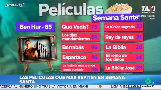 Y es que, como bien señala el propio presentador, hay una diferencia clara con otras épocas del año: "En Navidad se emite mucho cine navideño, pero hay producciones o estrenos nuevos cada año...en Semana Santa son las que hemos visto toda la vida unas 75 veces".