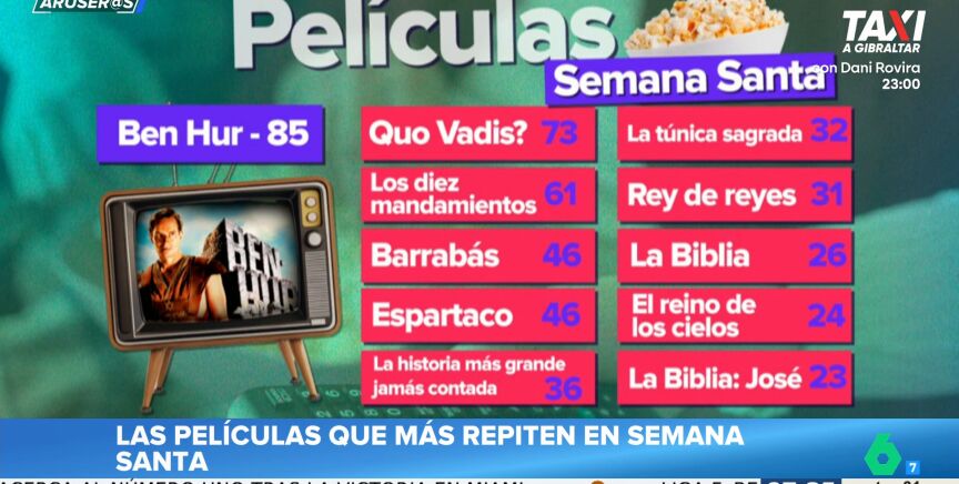 En Aruser@s repasan los clásicos que nunca fallan en televisión cuando llega la Semana Santa. Una lista de títulos que, año tras año, regresan a la parrilla y que muchos ya se saben de memoria.