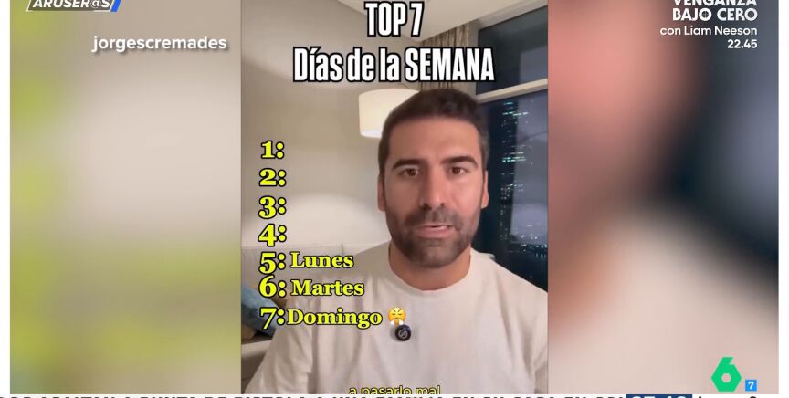 El creador de contenido Jorge Cremades genera debate en el plató de Aruser@s tras publicar un ranking en el que clasifica los mejores y peores días de la semana, donde los colaboradores han compartido sus propias opiniones sobre qué días tacharían del calendario.
