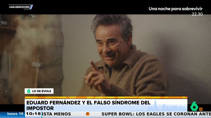 Alfonso Arús enseña en el vídeo que hay sobre estas líneas la reflexión de Eduard Fernándezcon Jordi Évole en Lo de Évole sobre el síndrome del impostor. "Ahora tengo la sensación de que todo el mundo lo tiene", afirma Jordi Évole al actor, que contesta tajante: "Lo dice todo el mundo y la mitad de las veces no es verdad".