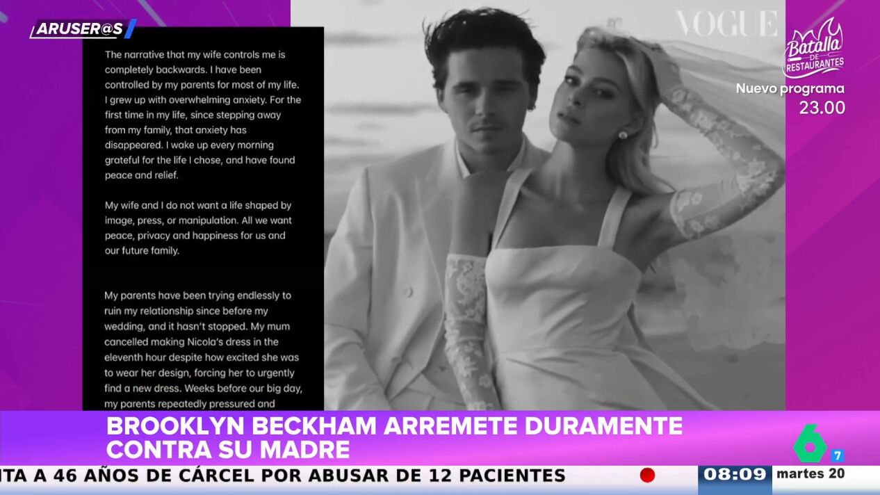 Alfonso Arús analiza en el plató de Aruser@s el comunicado viral que ha publicado Brooklyn Beckham contra sus padres,David y Victoria Beckham. El hijo mayor del exfutbolista y la diseñadora de moda ha asegurado que ha hecho "todo lo posible para mantener estos asuntos privado".