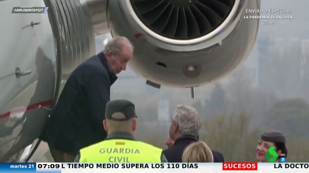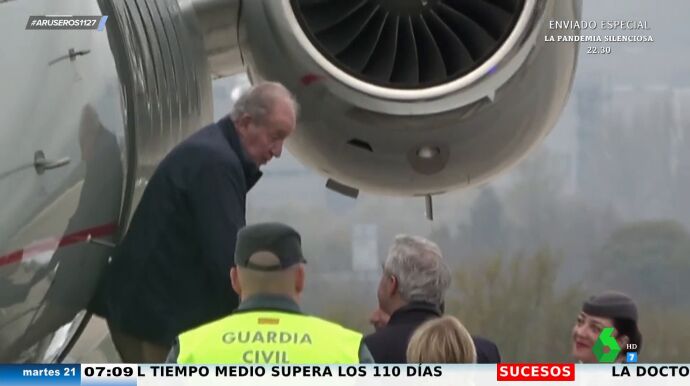 Aruser@s emite las primeras imágenes del rey emérito en este viaje de vuelta a España. El rey Juan Carlos voló a Vitoria para someterse a un chequeo médico que duró alrededor de 5 horas, informa Tatiana Arús en el programa. "Después ya puso rumbo a Sanxenxo, donde se van a disputar esas regatas a lo largo del fin de semana". Allí le estaba esperando su amigo Pedro Campos. El monarca estaba sonriente y saludando a la prensa, como podemos ver en este vídeo.