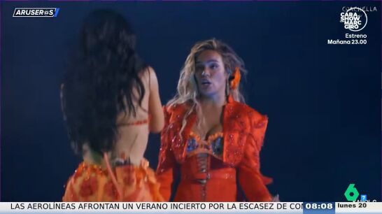 Y es que Karol G ha vuelto a compartir escenario con Becky G, como se puede ver en este vídeo, donde ambas cantan su exitoso tema en común, 'MAMIII'. Tras ver el vídeo, Alfonso Arús destaca que "el escenario y la puesta en escena son espectaculares". Sin embargo, el presentador confiesa que ha visto "los aledaños y son deprimentes": "No me meto ahí ni loco".
