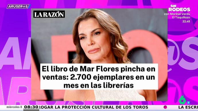 Alfonso Arús destaca que "las cifras del primer mes en ventas de las memorias de Mar Flores no han sido para lanzar cohetes". Sin embargo, el presentador de Aruser@s confiesa que le ha "sorprendido que hasta 2700 personas hayan comprado": "Serían los libros que se quedaron la editorial y ella".