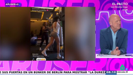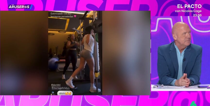 Alfonso Arús descubre en el plató de Aruser@s que los miércoles es un buen día para ejercitar los glúteos gracias a este vídeo de Georgina Rodríguez en el gimnasio.